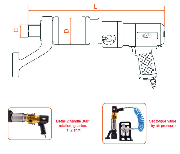 ● Preset the torque through the air pressure to stop the set torque value