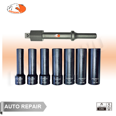 3/8" DR. Pneumatic Bolt Breaker & Low Internal Edge Deep Impact Socket Set (8PCS)