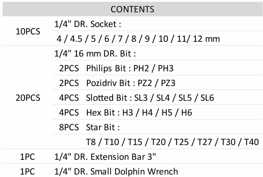 Pesquisa Avançada 1/4" 3/8" 1/2" 3/4" 1" 1-1/2" Casa » FERRAMENTAS PNEUMÁTICAS » FERRAMENTA DE MÃO » Série de bits » Ratchet Bit Sets » 32PCS 1/4"DR. Sockets & Bits Set 32PCS 1/4"DR. Sockets & Bits Set modelo : BS-8620A-32 quantidade : Add To Inquiry Especificações BS-8620A-32 32PCS 1/4"DR. Sockets & Bits Set Related Products 31PCS REVERSIBLE RATCHET HANDLE SETmodelo : BS10031S1 Add To Inquiry 19PCS REVERSIBLE BIT & SOCKET RATCHET HANDLE SETmodelo : BS10019S1 Add To Inquiry 8PCS 3/8 " Stubby Bit Setmodelo : BS05208HBC Add To Inquiry 30PCS Precision 3C Screwdriver Setmodelo : PRS3CS1 Add To Inquiry 33PCS Bit & Socket W/Half Moon Ratchet Handle Setmodelo : BS7033S5 Add To Inquiry 21PCS 1/4”72 Teeth Disc Ratchet Bit Setmodelo : BS914 Add To Inquiry